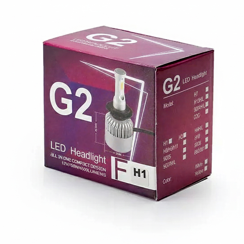 هدلایت G2 در پایههای H1 و H7 موجود است و برای نصب روی چراغهای جلو و مهشکن خودرو مناسب میباشد. فن خنککننده هوشمند به کاهش دمای تولید شده کمک میکند و استاندارد IP65 موجب مقاومت محصول در برابر آب و گرد و غبار میشود.
